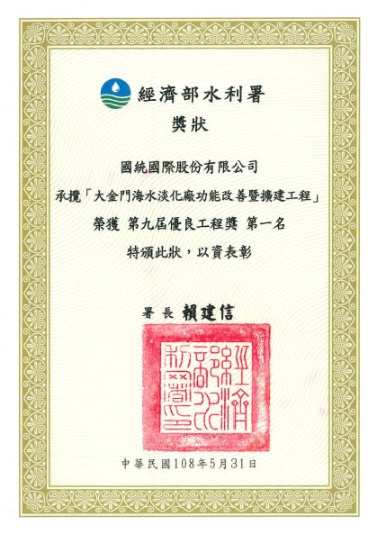 2019 Water Resources Agency - Public Works Quality Award |